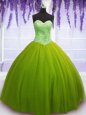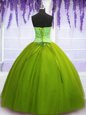 Home >  Quinceanera Dresses >  Luxurious Quinceanera Dresses > Designer Olive Green Tulle Lace Up Quinceanera Gowns Sleeveless Floor Length Beading