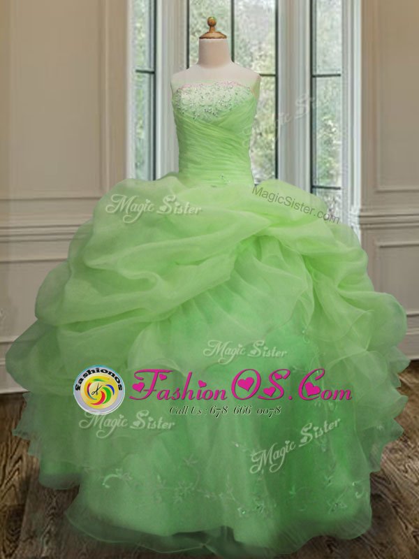 Home >  Quinceanera Dresses >  Fast Delivery Quinceanera Dresses > Designer Organza Lace Up Strapless Sleeveless Floor Length Sweet 16 Quinceanera Dress Embroidery and Pick Ups