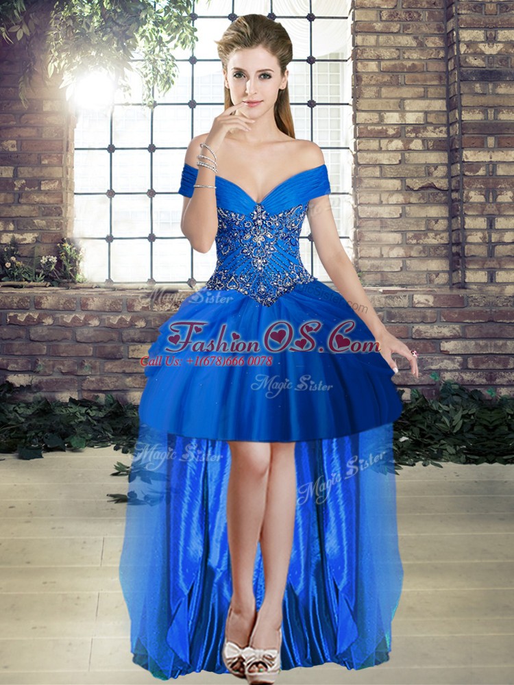 Designer Royal Blue Tulle Lace Up Off The Shoulder Sleeveless Quinceanera Dress Brush Train Beading and Pick Ups