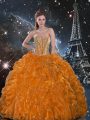 Designer Rust Red Sweetheart Lace Up Beading and Ruffles Sweet 16 Dresses Sleeveless