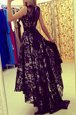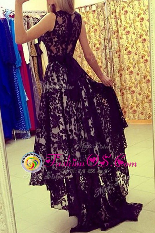 Designer Scoop Black Sleeveless With Train Lace Zipper Prom Gown