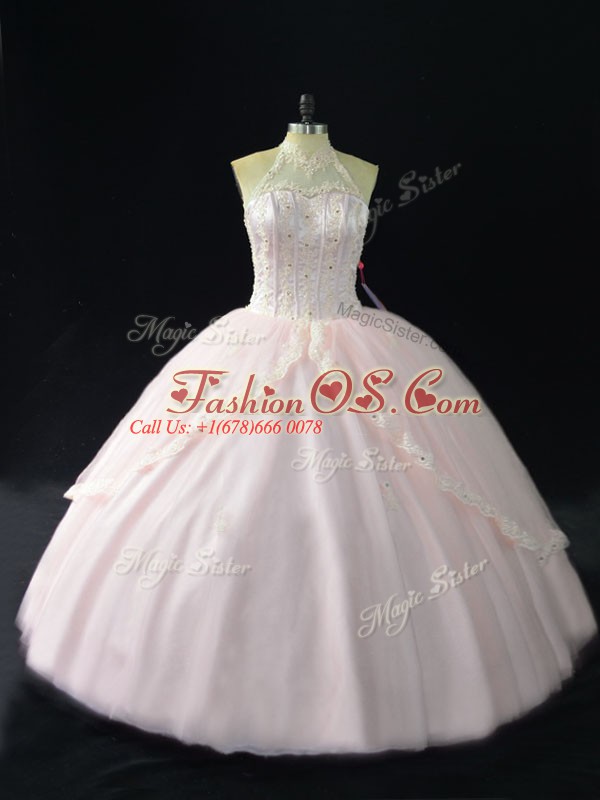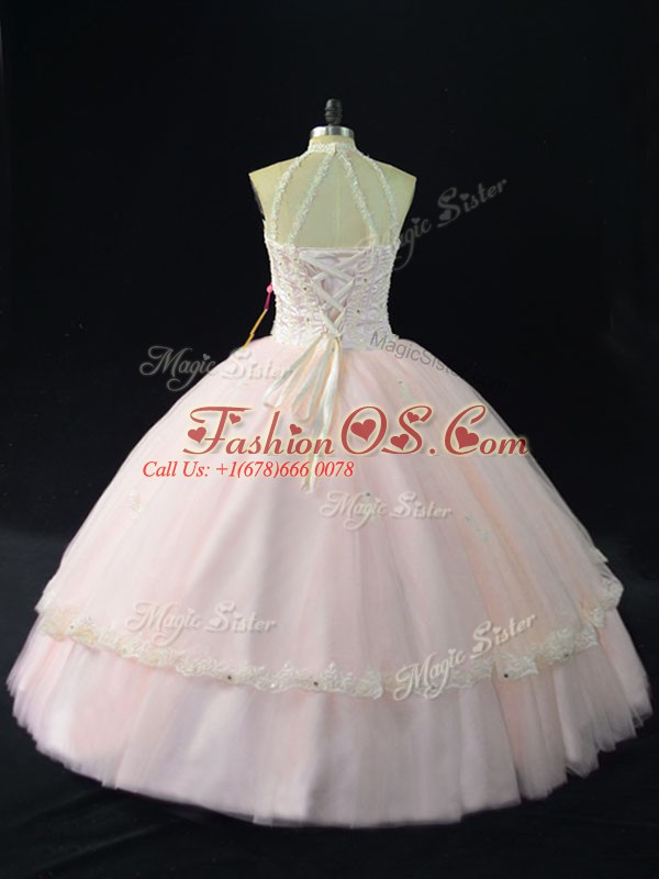 Designer Sleeveless Lace Up Floor Length Beading and Appliques Sweet 16 Quinceanera Dress