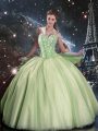 Designer Sweetheart Sleeveless Sweet 16 Quinceanera Dress Floor Length Beading Yellow Green Tulle
