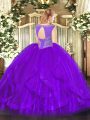 Designer Tulle Scoop Sleeveless Lace Up Beading and Ruffles Quince Ball Gowns in Green