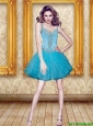 Detachable Beading and Ruffles Aqua Blue Prom Dress