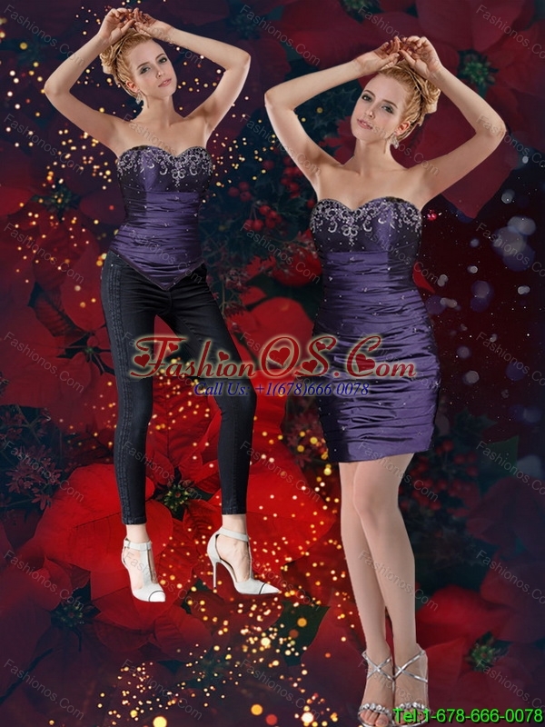 Detachable Brand New Sweetheart Beading Dark Purple Prom Dress for 2015