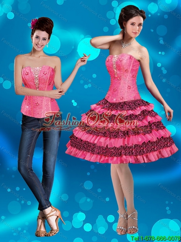 Detachable Elegant Strapless 2015 Prom Gown with Beading and Ruffled Layers