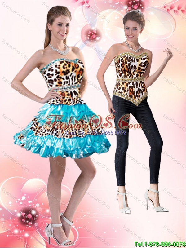Detachable Exclusive 2015 Prom Dress with Leopard Print and Ruffled Layers