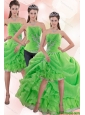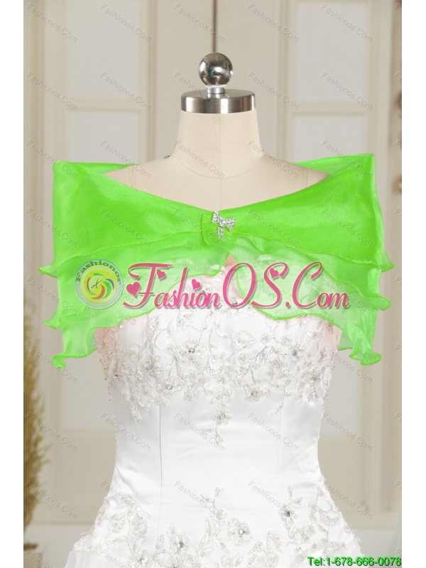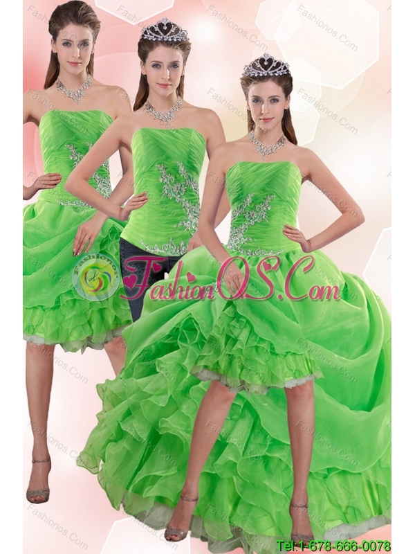 Detachable Exclusive Strapless Spring Green Prom Dress with Appliques and Ruffles