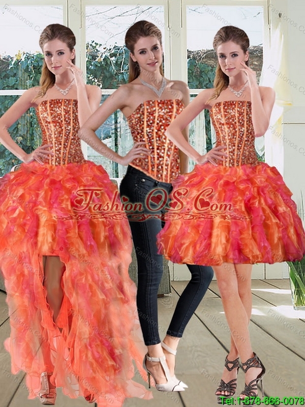 Home >  Prom Dresses >  Detachable Prom Dresses > Detachable Modest Strapless Multi Color 2015 Prom Dresses with Beading and Ruffles