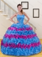 Detachable Multi Color Quince Dresses with Ruffled Layers and Beading