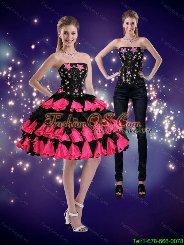 Detachable Remarkable Multi Color 2015 Prom Dress with Appliques and Ruffled Layers
