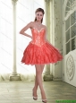 Detachable Short Beading and Ruffles Coral Red 2015 Prom Dress
