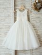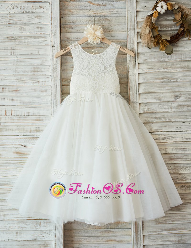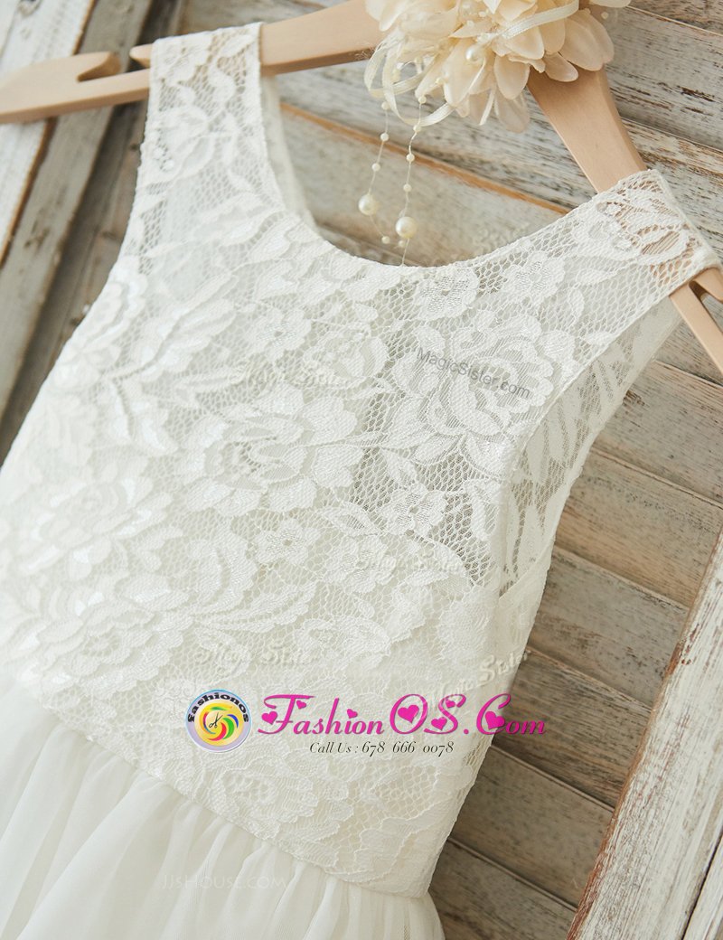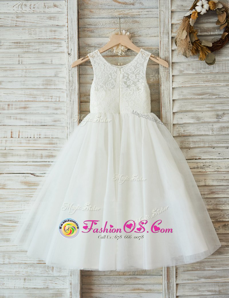 Discount A-line Flower Girl Dresses White Scoop Tulle Sleeveless Floor Length Zipper