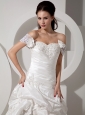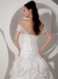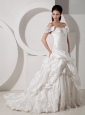 Home >  Wedding Dresses >  Popular Wedding Dresses > Discount A-line Off The Shoulder Wedding Dress Court Train Taffeta Appliques