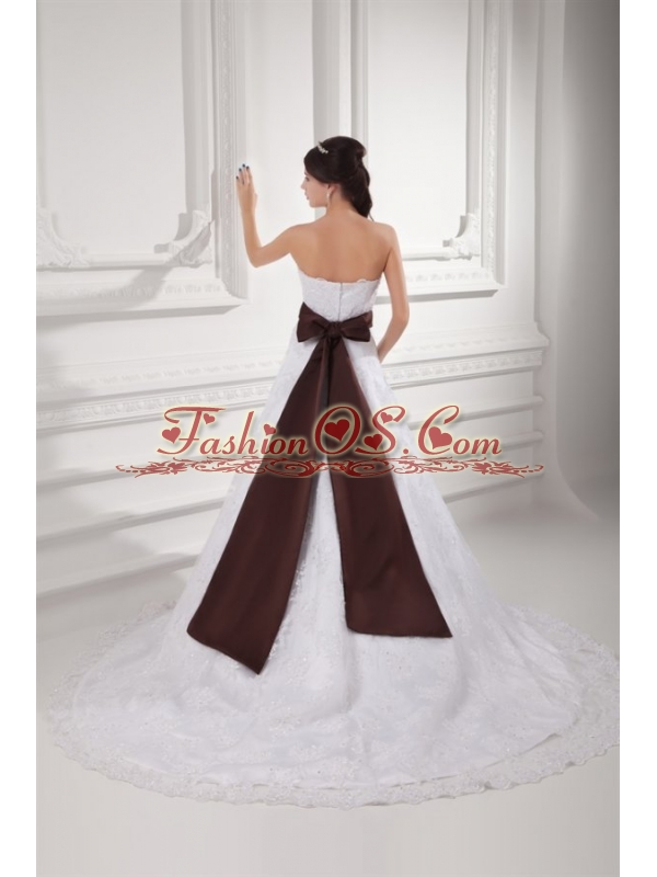Discount A-line Strapless Court Train Wedding Dress with Sash