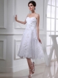 Home >  Wedding Dresses >  Perfect Wedding Dresses > Discount A-line Sweetheart Tulle Appliques White Wedding Dress with Knee-length