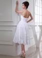 Discount A-line Sweetheart Tulle Appliques White Wedding Dress with Knee-length