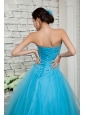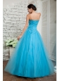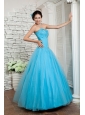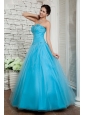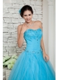Discount Aqua Blue A-line Prom / Evening Dress Sweetheart Beading Floor-length Tulle