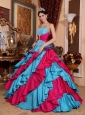 Discount Aqua Blue and Red Quinceanera Dress Strapless Taffeta Embroidery Ball Gown