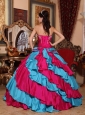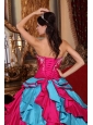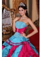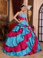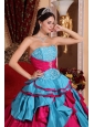 Home >  Quinceanera Dresses >  Fashionable Quinceanera Dresses > Discount Aqua Blue and Red Quinceanera Dress Strapless Taffeta Embroidery Ball Gown