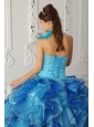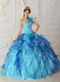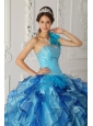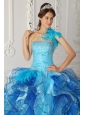 Home >  Quinceanera Dresses >  Pretty Quinceanera Dresses > Discount Aqua Blue Quinceanera Dress One Shoulder Satin and Organza Beading Ball Gown