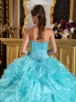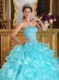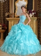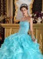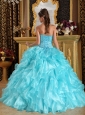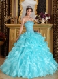 Discount Aqua Blue Quinceanera Dress Sweetheart  Ruffles Organza Ball Gown
