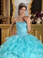 Home >  Quinceanera Dresses >  Pretty Quinceanera Dresses > Discount Aqua Blue Quinceanera Dress Sweetheart Ruffles Organza Ball Gown