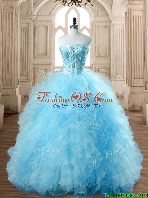 Home >  Quinceanera Dresses >  Fast Delivery Quinceanera Dresses > Discount Aqua Blue Quinceanera Dress with Beading and Ruffles