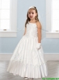 Discount Asymmetrical Neckline White Flower Girl Dress with Appliques