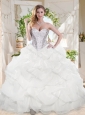Discount Ball Gown Sweetheart Organza Beading and Bubbles Quinceanera Dress in White