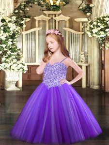 Home >  Special Occasion Dresses >  Pretty Little Girl Pageant Dresses > Discount Ball Gowns Girls Pageant Dresses Lavender Spaghetti Straps Tulle Sleeveless Floor Length Lace Up