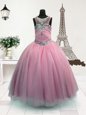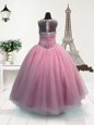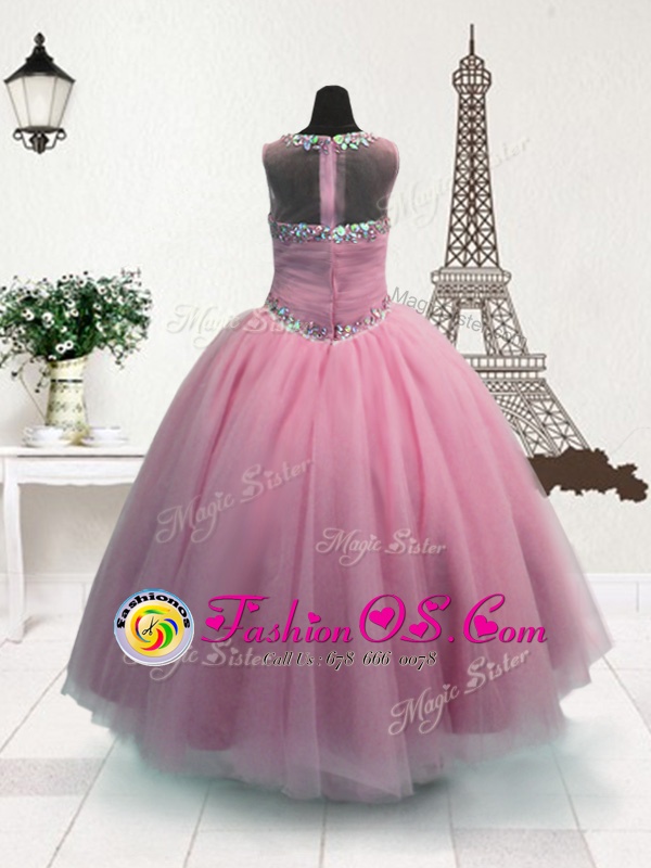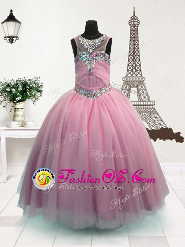 Discount Ball Gowns Girls Pageant Dresses Pink Scoop Organza Sleeveless Floor Length Zipper