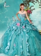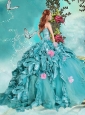 Discount Beaded and Handcrafted Flowers Quinceanera Dress with Brush Train