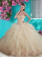 Discount Beaded and Ruffled Big Puffy Quinceanera Dress in Champagne