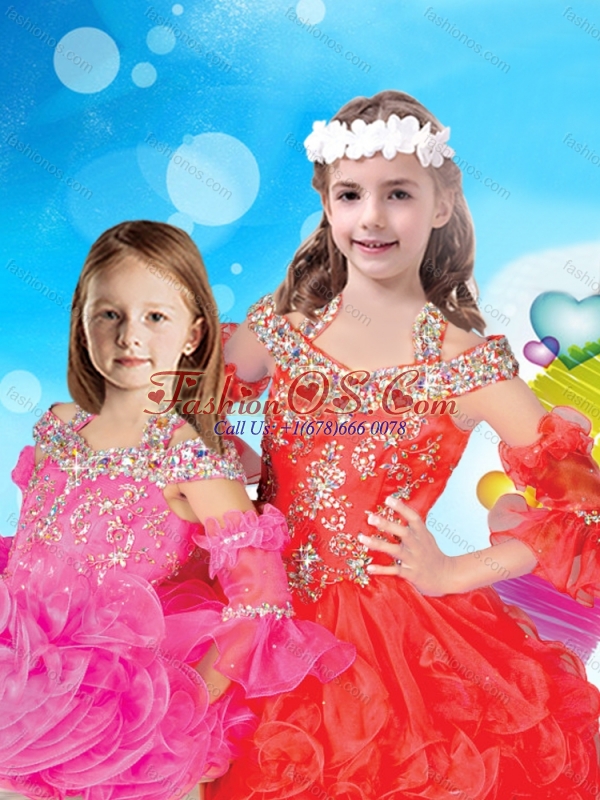 Discount Beaded and Ruffled Cap Sleeves New Style Little Girl Pageant Dress with Halter Top
