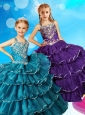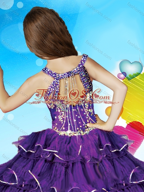Home >  Special Occasion Dresses >  Mini Quinceanera Dresses > Discount Beaded and Ruffled Layers Little Girl Pageant Dress with Straps