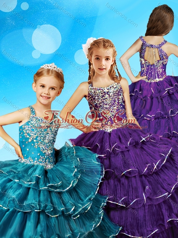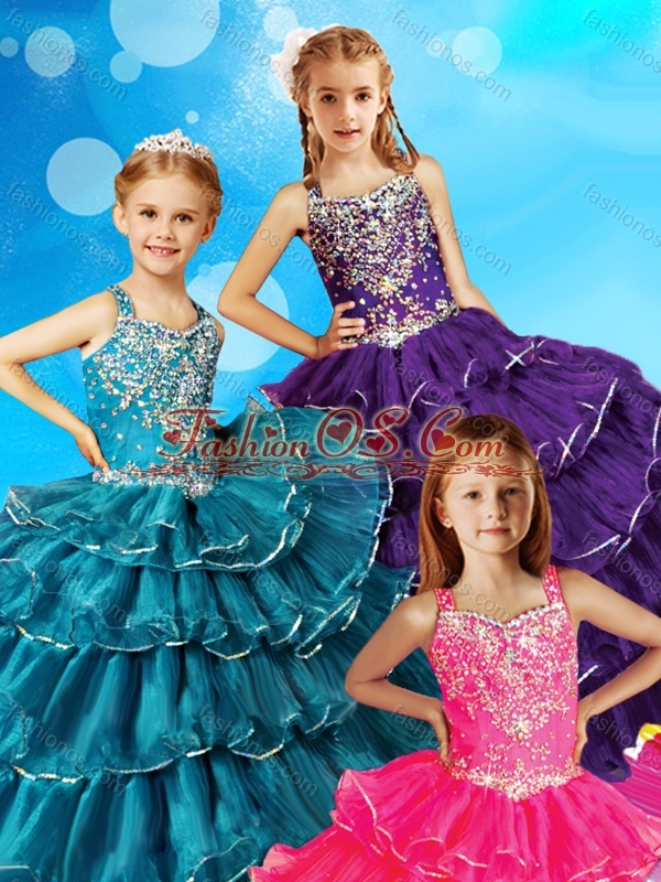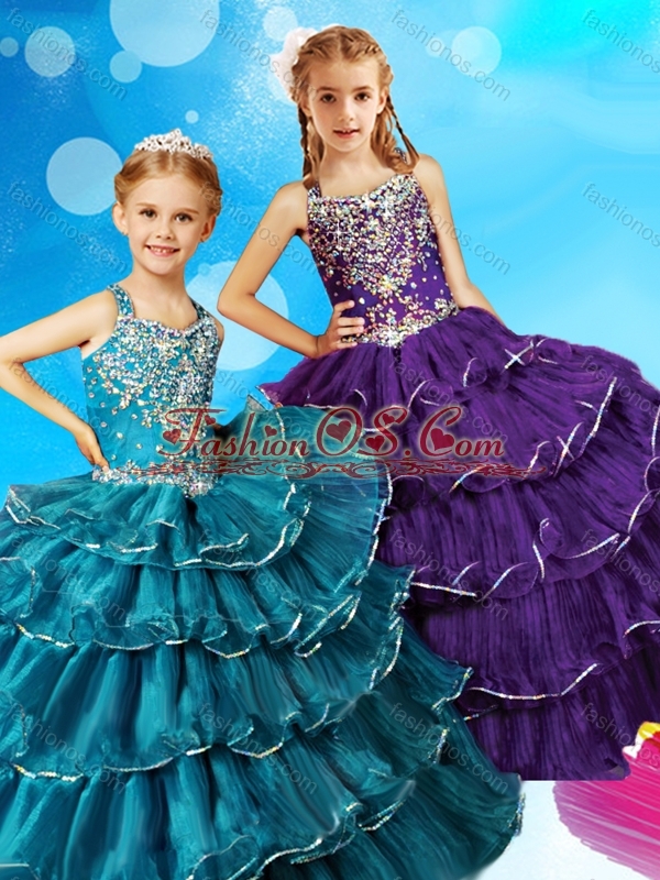 Discount Beaded and Ruffled Layers Little Girl Pageant Dress with Straps