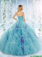 Discount Beaded Aque Blue Detachable Quinceanera Dresses in Organza