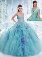 Discount Beaded Bodice and Ruffled Detachable Sweet 16 Dresses in Aquamarine