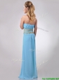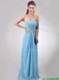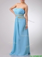 Discount Beaded Decorated Waist and Ruched Bodice Prom Dress in Aqua Blue