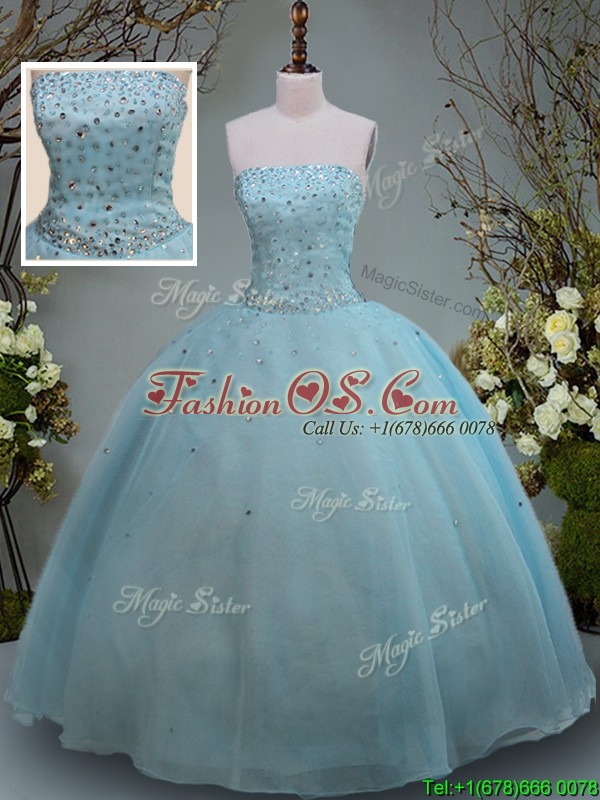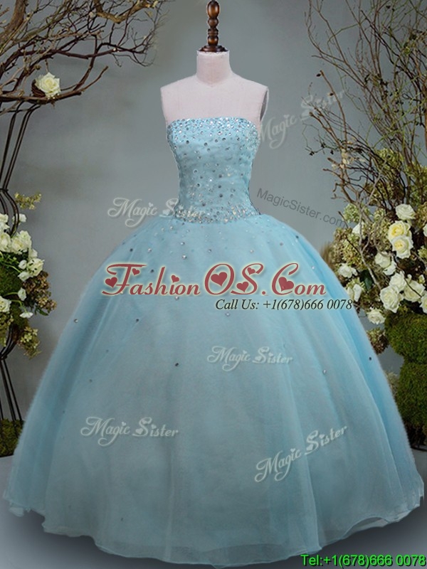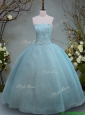 Discount Big Puffy Aquamarine Strapless Quinceanera Gown with Beading