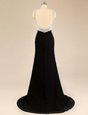Discount Black Backless Bateau Beading Prom Party Dress Chiffon Sleeveless Brush Train