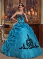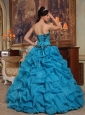 Home >  Quinceanera Dresses >  Fashionable Quinceanera Dresses > Discount Blue Quinceanera Dress Strapless Taffeta and Organza Beading and Pick-ups Ball Gown