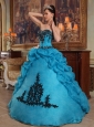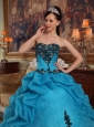 Discount Blue Quinceanera Dress Strapless Taffeta and Organza Beading and Pick-ups Ball Gown