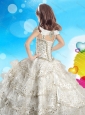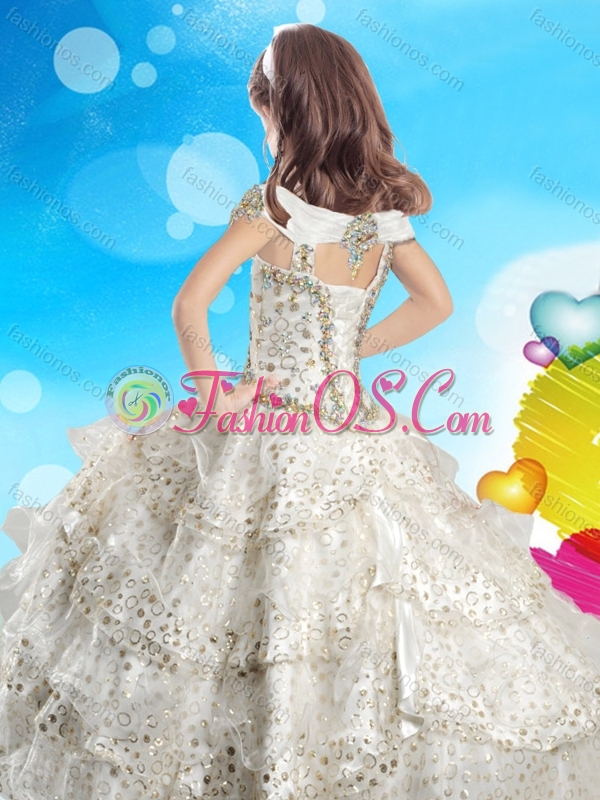 Home >  Special Occasion Dresses >  Mini Quinceanera Dresses > Discount Cap Sleeves Beaded Little Girl Pageant Dress with Off the Shoulder