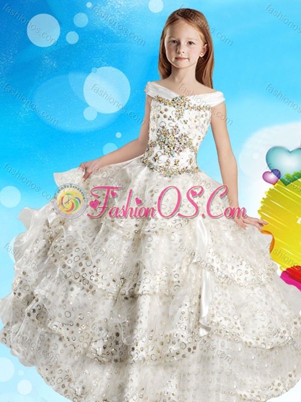 Discount Cap Sleeves Beaded Little Girl Pageant Dress with Off the Shoulder