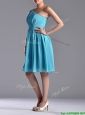 Discount Chiffon Aqua Blue Knee Length Dama Dress with One Shoulder