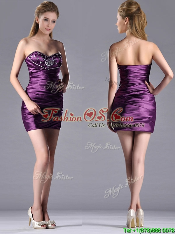 Home >  Bridesmaid Dresses >  Cheap Bridesmaid Dresses > Discount Column Beaded Bust and Ruched Bridesmaid Dress in Dark Purple