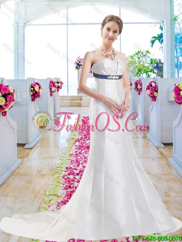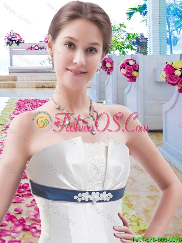 Discount Column Bridal Gowns with Belt and Appliques
